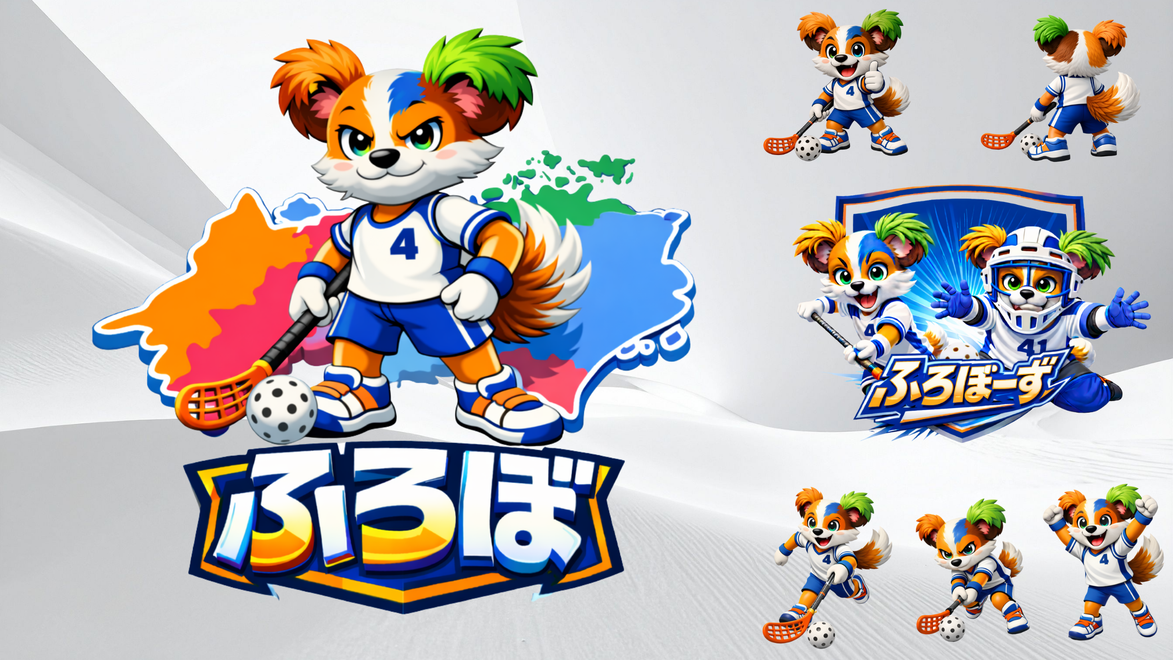 「ふろぼー」は、四国フロアボール連盟のマスコットキャラとして、フロアボール競技の魅力とスピード感、そして四国らしさを大切にしながらデザインされました。初めてフロアボールに触れる方にも、競技を身近に感じてもらえる存在となることを目指しています。